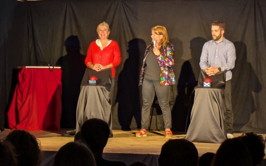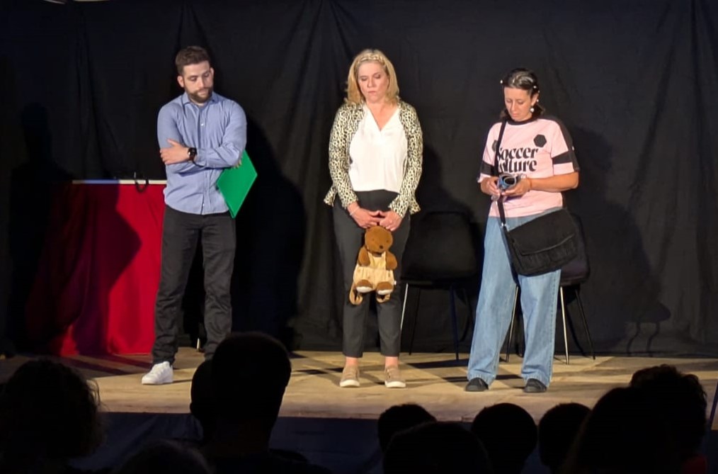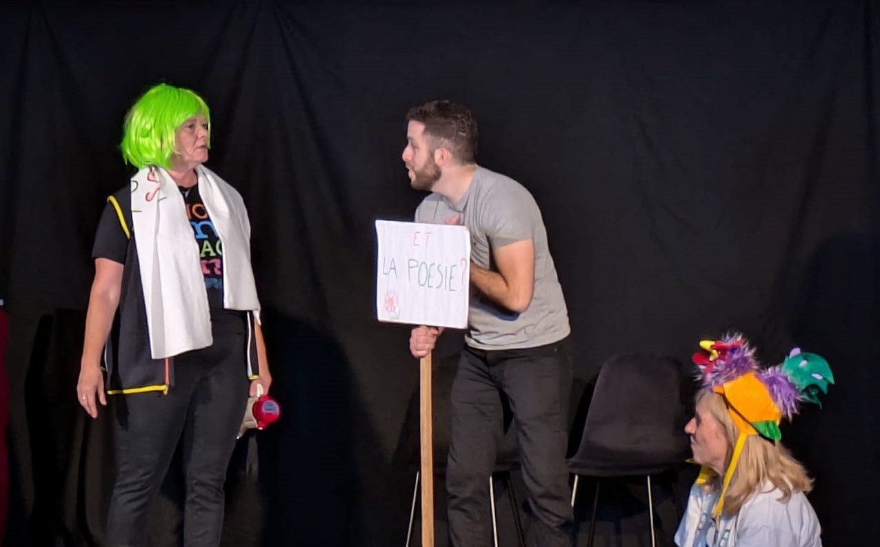 Puis s’en est suivie une pièce de Catherine Anne « Comédies Tragiques » , jouée par la troupe la CATHA, mise en scène par Micherino MACCARI. Que ce soit dans une agence Pôle Emploi, dans un bureau de poste ou dans une cour de récré, les comédiens nous ont présenté les absurdités du système avec des personnages d’une humanité généreuse et poignante.